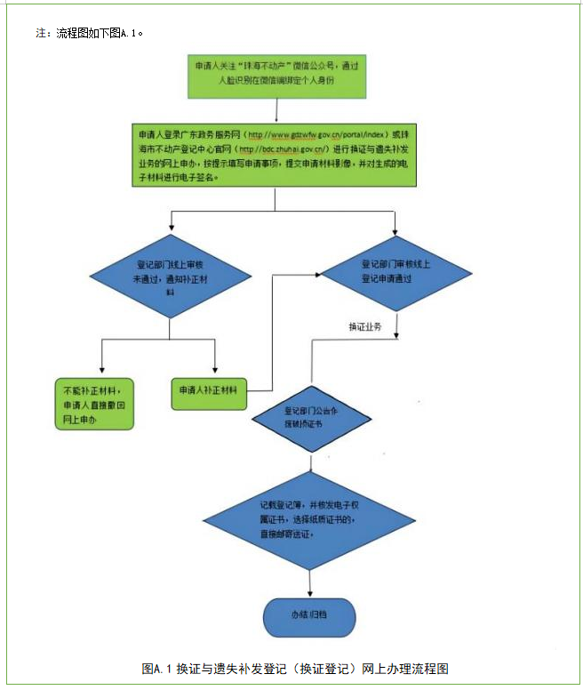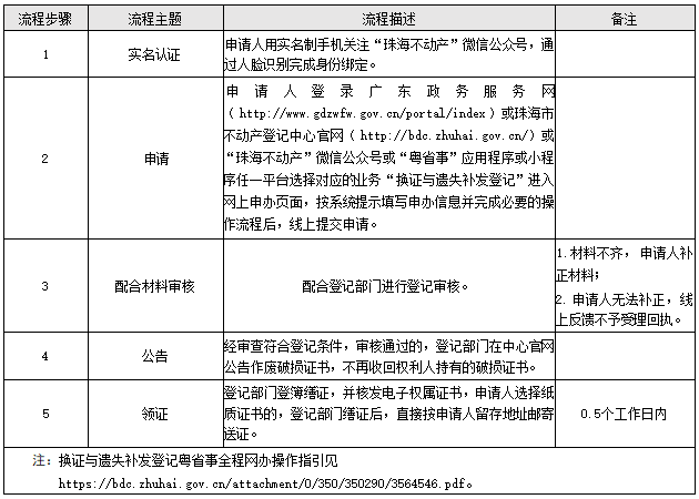 “珠海不动产”微信公众号——办事大厅——在线申请——换证与遗失补发登记。