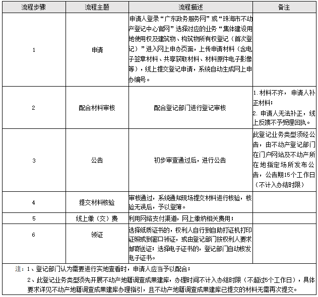 — —搜索“集体建设用地使用权及建筑物、构筑物所有权登记(首次登记) ”;