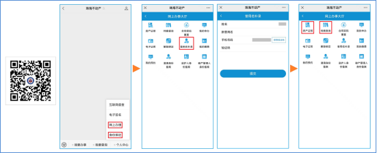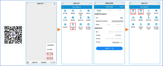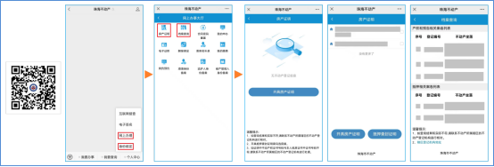1.特定身份查询:微信关注“珠海不动产”公众号,在“个人中心”进行“身份绑定”后,点击“办事大厅”-“我要查询”-“房产证明”或“档案查询”,即可查询、打印个人名下的不动产产权、抵押查封证明及合同、发票、税单等档案信息。