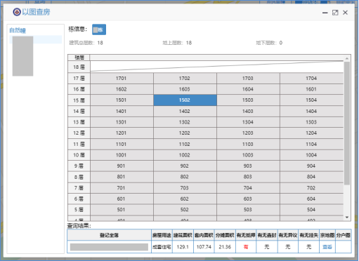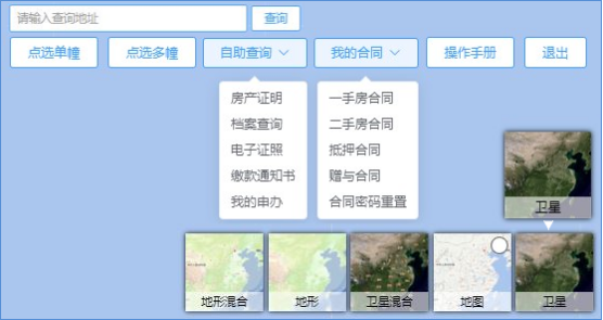 3.不动产登记信息及地籍图可视化查询(以图查房):适用于任意人查询,通过地名地址快速定位查询的不动产位置,叠加天地图的电子地图、影像地图等,可查看房屋周边情况,点击自然栋图形,即可查看楼盘名称、地址、房屋用途、建筑面积、房屋坐落、抵押查封产权状态等楼盘表信息及对应房屋信息。