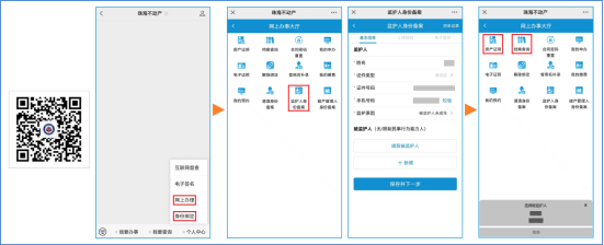 ②监护人查询:在“办事大厅”-“身份备案”-“监护人身份备案”完成监护人身份备案后,监护人可代无(限制)民事行为能力人查询其名下的不动产登记信息并出具证明。