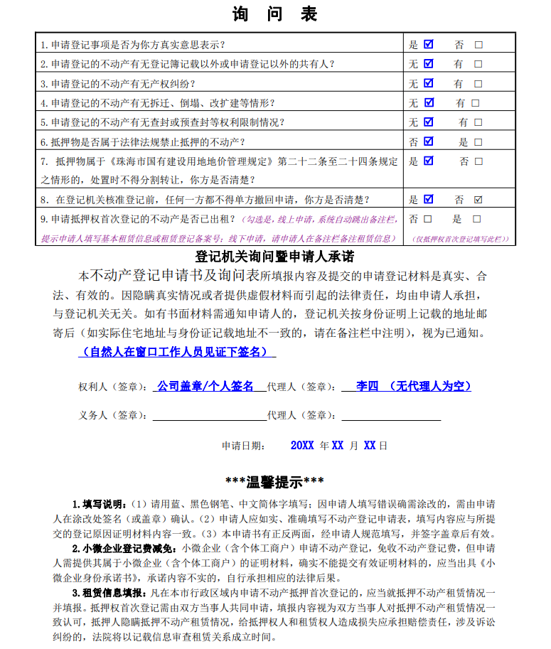 目录 搜索 申请书填写范例夫妻财产分配协议书申请书填写范例---产权注销申请书填写范例---抵押权设立申请书填写范例---抵押权注销申请书填写范例---二手房转移或者赠与申请书填写范例---夫妻婚内析产申请书填写范例---更正登记申请书填写范例---名称或者地址变更申请书填写范例---遗失补发赠与合同 暂无相关搜索结果! 本文档使用 MinDoc 发布 申请书填写范例---抵押权注销 文档更新时间: 2025-03-12 15:26 作者:珠海市不动产登记中心
