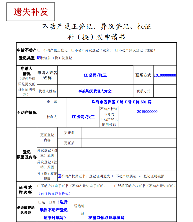 目录 搜索 申请书填写范例夫妻财产分配协议书申请书填写范例---产权注销申请书填写范例---抵押权设立申请书填写范例---抵押权注销申请书填写范例---二手房转移或者赠与申请书填写范例---夫妻婚内析产申请书填写范例---更正登记申请书填写范例---名称或者地址变更申请书填写范例---遗失补发赠与合同 暂无相关搜索结果! 本文档使用 MinDoc 发布 申请书填写范例---遗失补发 文档更新时间: 2025-03-12 15:45 作者:珠海市不动产登记中心