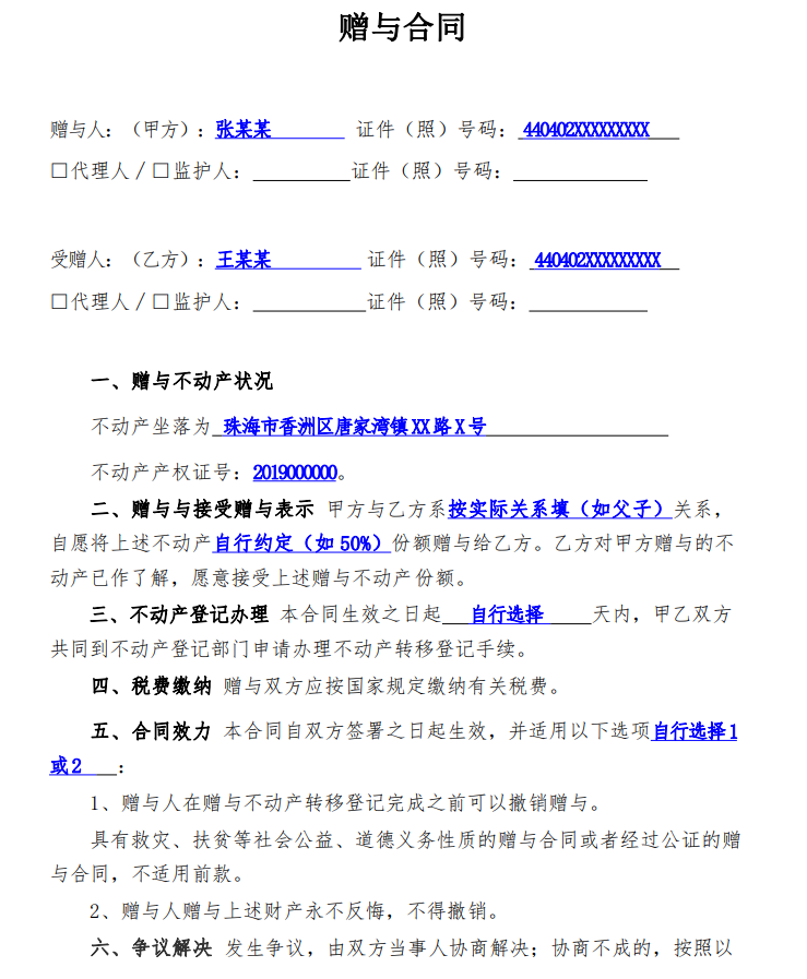目录 搜索 申请书填写范例夫妻财产分配协议书申请书填写范例---产权注销申请书填写范例---抵押权设立申请书填写范例---抵押权注销申请书填写范例---二手房转移或者赠与申请书填写范例---夫妻婚内析产申请书填写范例---更正登记申请书填写范例---名称或者地址变更申请书填写范例---遗失补发赠与合同 暂无相关搜索结果! 本文档使用 MinDoc 发布 赠与合同 文档更新时间: 2025-03-13 11:36 作者:珠海市不动产登记中心